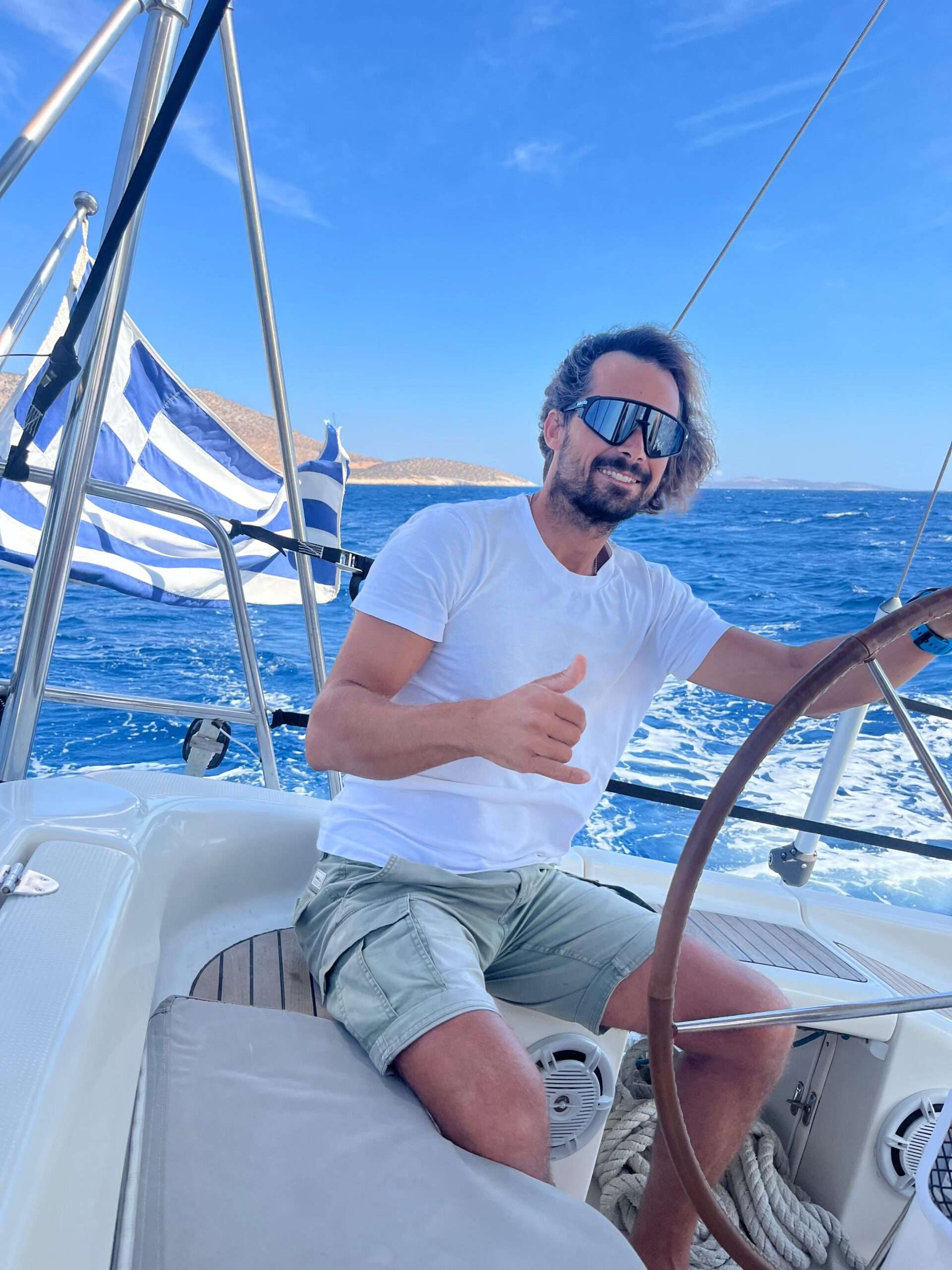 Originally a finance graduate, Nikos quit his career and turned 180° to follow his passion for the sea. In 2018, he purchased his first sailing yacht “Matilda” a Bavaria 42 and launched his own charter company in the heart of the Aegean Sea.His philosophy was to offer unique sailing experiences , far from the mass touristic places and with respect to the nature and the locals.