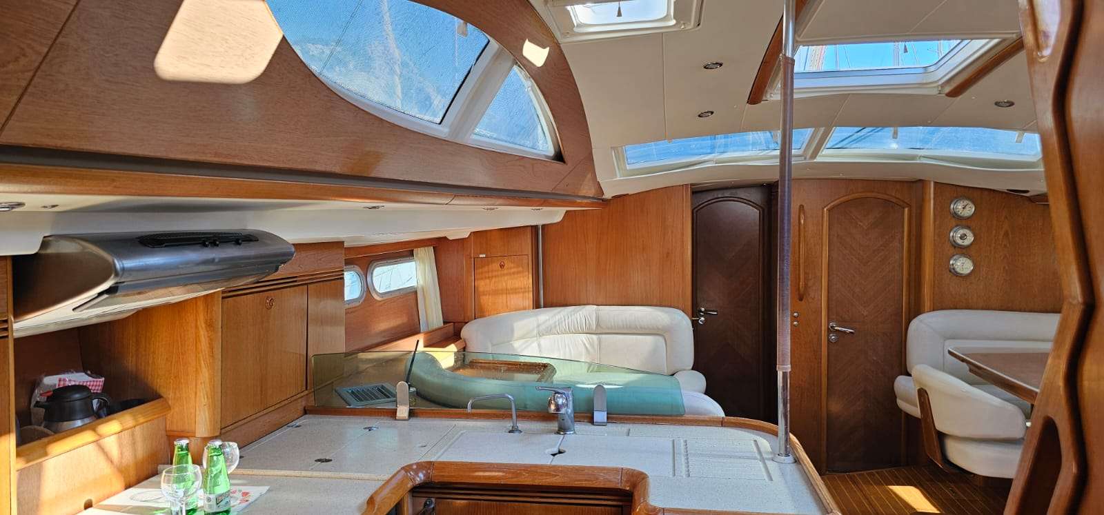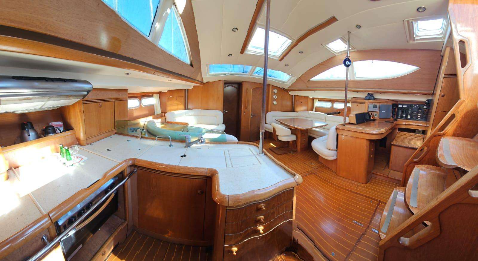 The Jeanneau 54 DS ,once the flagship of Jeanneau at the time of her launch — classic and elegant, she’s a yacht designed for exceptional comfort and unparalleled seaworthiness. Built to handle challenging conditions, this powerful yacht can take on the strong Meltemi winds of the Aegean Sea with confidence, bringing you safely and smoothly to your next destination while many other boats remain in port.